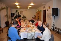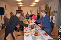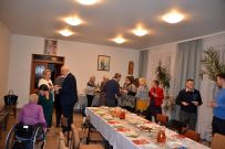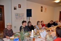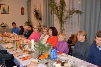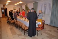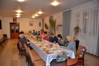 Tam po przywitaniu zgromadzonych parafian przez księdza proboszcza Jana Zająca oraz przeczytaniu fragmentu Pisma Świętego, w radosnej atmosferze wszyscy uczestnicy z opłatkiem w ręku wzajemnie złożyli sobie życzenia. Przy poczęstunku w postaci herbaty, domowych wypieków, owoców i słodyczy w miłej atmosferze nie zabrakło rozmów oraz wspólnego śpiewania kolęd. Spotkanie minęło w bardzo świątecznej atmosferze bo każdy miał poczucie uczestnictwa w prawdziwym Kościele i wspólnocie rodziny parafialnej.