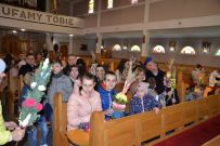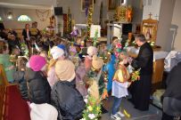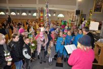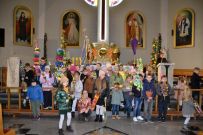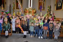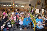 Na koniec uczestnicy konkursu dzierżąc w dłoniach piękne palmy wielkanocne ustawili się przed prezbiterium wraz księdzem proboszczem Janem Zającem i organizatorkami konkursu do wspólnego zdjęcia.