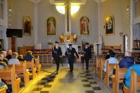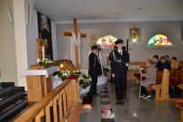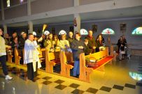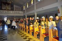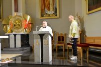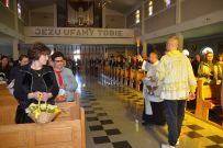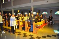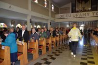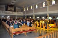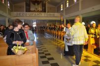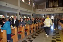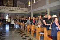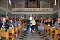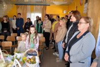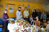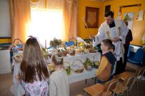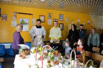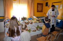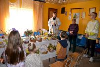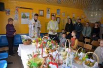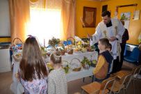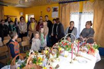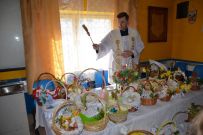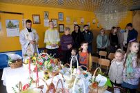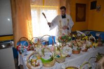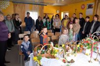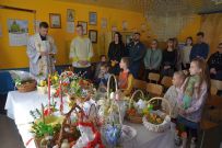 Zaś o godzinie 10:00 ksiądz Wojciech Ciupak poświęcił pokarmy jakie parafianie zebrani w Domu Ludowym na ul. Dzikowskiej włożyli do swoich koszyczków wielkanocnych.