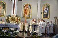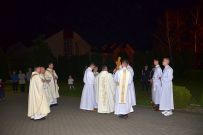Na zewnątrz kościoła ks. wikariusz Sylwester Utnik poświęcił ogień zapalony przez Panów Strażaków z Ochotniczej Straży Pożarnej na Dzikowie, od którego następnie zapalono Paschał – wielką woskową świecę, która symbolizuje zmartwychwstałego Chrystusa. Liturgia światła ma nam pomóc wyrazić to, że Chrystus będący Światłem świata objawił nam Boga Ojca. Paschał wniesiony został procesyjnie do okrytej mrokiem świątyni, a wierni zapalili od niego swoje świece, przekazując sobie wzajemnie światło.