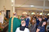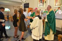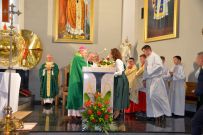 Po homilii uformowała się procesja bierzmowanych. Kapłani odbierali kartki od bierzmowanych i podawali imię ks. biskupowi a ksiądz biskup namaszczał krzyżmem świętym, czyniąc znak krzyża na czole bierzmowanego. Młodzież po otrzymaniu sakramentu bierzmowanie wróciła do swoich ławek.