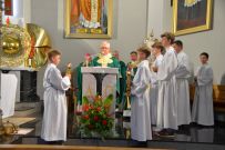 Na wstępie uroczystości rodzice dzieci przystępujących do sakramentu bierzmowania przywitali księdza biskupa prosząc o udzielenie sakramentu bierzmowania młodzieży zgromadzonej w kościele. Przed homilią, którą wygłosił ksiądz biskup Krzysztof Nitkiewicz ksiądz proboszcz Jan Zając poprosił księdza biskupa o udzielenie młodzieży sakramentu bierzmowania jednocześnie zapewniając Go o dobrym przygotowaniu młodzieży do przyjęcia tego sakramentu. W wygłoszonej homilii ksiądz biskup zachęcał młodych, aby w różnych sytuacjach życiowych przywoływali Ducha Świętego.
