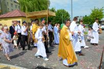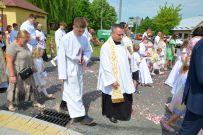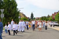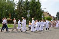 Była piękna pogoda, stąd bardzo dużo osób, w tym całe rodziny z dziećmi sypiącymi kwiatki i dzwoniącymi dzwoneczkami uczestniczyło w Mszy świętej i procesji. Liturgiczna Służba Ołtarza, dzieci pierwszokomunijne, kandydaci na ministrantów, osoby niosące obrazy i feretrony, dzieci sypiące kwiatki długim kolorowym pochodem poprzedzali księży niosących Pana Jezusa w Najświętszym Sakramencie. Na uroczystość Bożego Ciała stawili się jak zawsze niezawodni panowie Strażacy z Ochotniczej Straży Pożarnej na Dzikowie, którzy nieśli baldachim. Zgodnie z tradycyjnym obrzędem wierni po drodze zabierali do domów gałązki brzóz, którymi przystrojone były ołtarze.