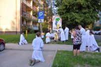 W czwartek, 6 czerwca 2024 roku odbyło się w naszej parafii zakończenie oktawy Bożego Ciała. Msza święta rozpoczęła się o godzinie 18:00, a po niej procesja z Najświętszym Sakramentem do czterech ołtarzy przeszła ulicami osiedla Dzików. Na każdym z ołtarzy odśpiewane zostały hymny, a następnie kapłan udzielał błogosławieństwa wiernym.