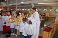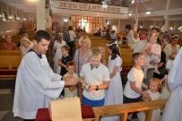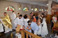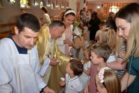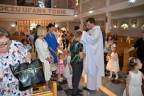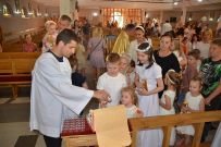 Po powrocie do kościoła ksiądz proboszcz Jan Zając poświęcił kwiaty, zioła i wianki, które stanowiło ważny element tej uroczystości. Na zakończenie Mszy św. miało miejsce błogosławieństwo dzieci. Po odmówieniu specjalnej modlitwy, na głowę każdego dziecka kapłani nałożyli swe ręce, kreśląc znak krzyża i wypraszając dla nich łaski. Każde z dzieci, za swoje zaangażowanie w procesje, dostało słodkie upominki.