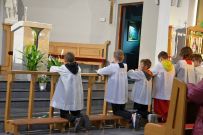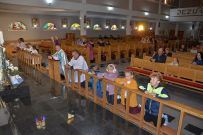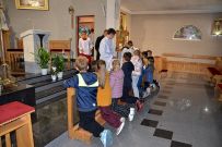 W naszym kościele 1 października rozpoczęliśmy wspólną modlitwą różańcową. O godz. 17:30 ksiądz Sylwester Utnik odprawił nabożeństwo różańcowe wspólnie z ministrantami, dziećmi i parafianami. Dzieci nieśmiało zareagowały na zaproszenie do modlitwy różańcowej przy balaskach ale z każdym dniem będą nabierały odwagi.