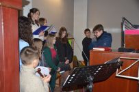 W podniosły, świąteczny nastrój przed Mszą Pasterką wprowadził nas występ Pana Organisty, Scholi, dwóch młodych skrzypaczek i jeszcze młodszego skrzypka oraz wiolonczelisty, którzy wystąpili w wigilijnym koncercie kolęd. Przed koncertem Pan organista pomodlił się wspólnie z występującą w koncercie młodzieżą, a następnie grając na organach uczestniczył w Ich występie. Zebrani w kościele parafianie i ich goście wspólnie ze Scholą przez pół godziny śpiewali piękne polskie kolędy.