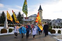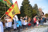 Z naszego kościoła po Mszy św. o godz. 10:00 pod przewodnictwem księdza wikariusza Sylwestra Utnika wyruszył kolorowy orszak. Przed wyjściem z placu kościelnego ksiądz Sylwester odczytał ewangelię, po której ruszyliśmy odprowadzeni do bramy głównej przez księdza proboszcza Jana.