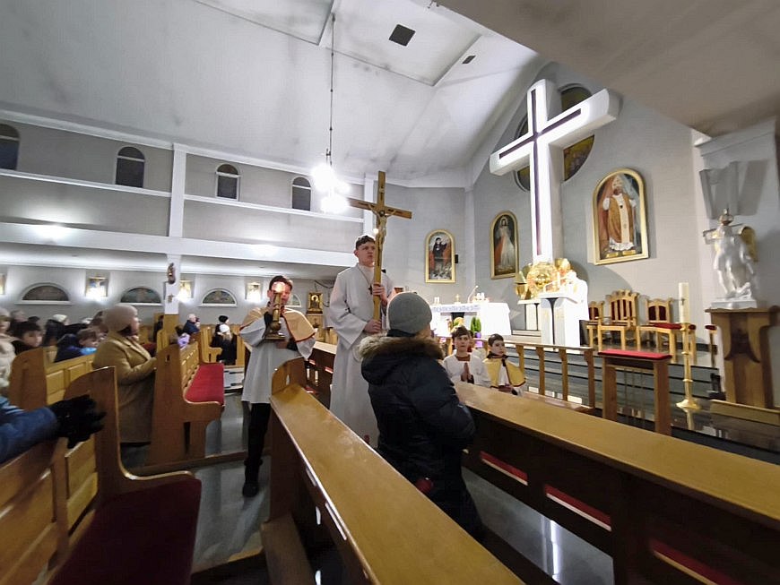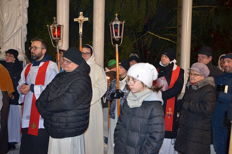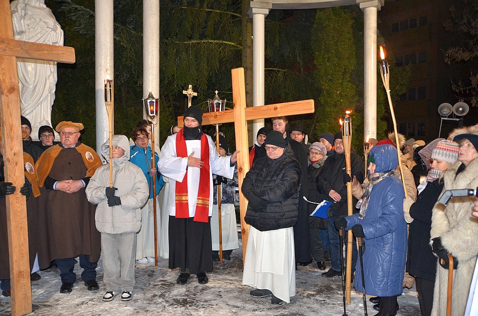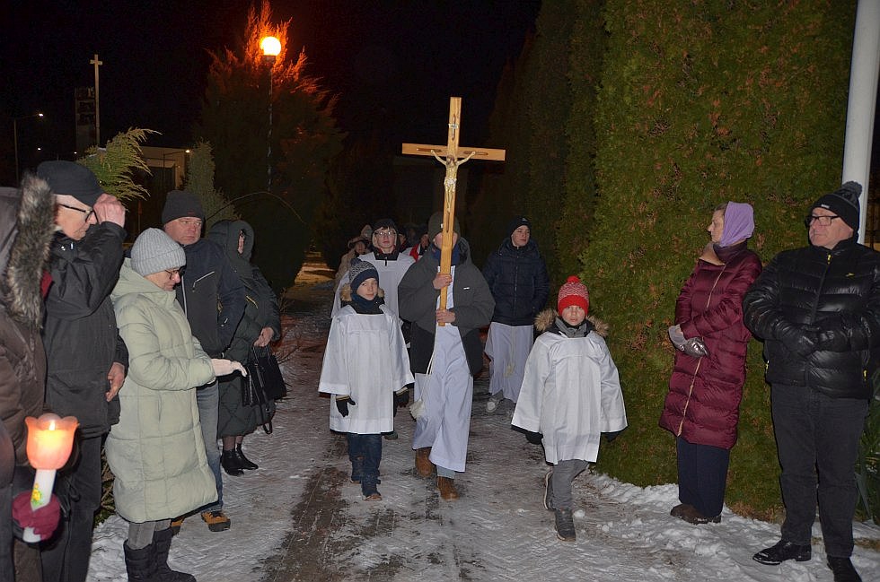 W pierwszy piątek Wielkiego Postu, 20 lutego 2026 roku o godz. 17:30 w naszym kościele zostało odprawione nabożeństwo pasyjne - Droga Krzyżowa. Bezpośrednio po nim została odprawiona Msza św., po której wierni wyruszyli, by przemierzając ulice Tarnobrzega i rozważając stacje męki Pańskiej - spotkać się, jak każdego roku, przy figurze Serca Pana Jezusa na osiedlu Serbinów.