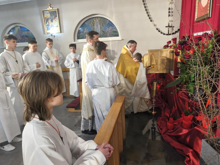 Msza Wieczerzy Pańskiej zakończyła się przeniesieniem Najświętszego Sakramentu do kaplicy adoracji. Tam do godz. 24:00 będzie trwała adoracja, do której zaproszony został każdy z nas, aby trwać na modlitwie z Jezusem i apostołami.