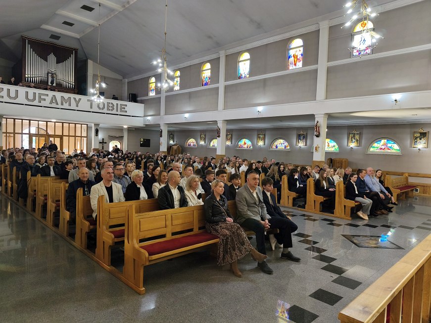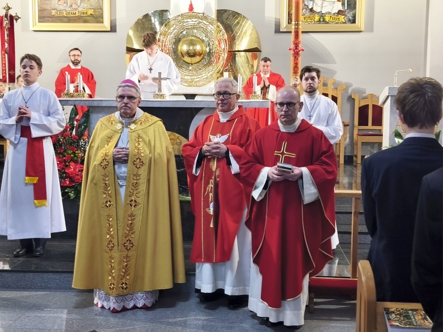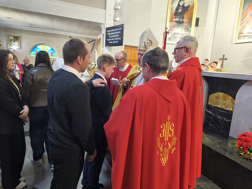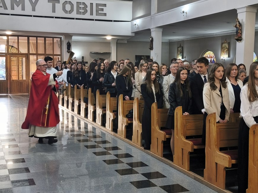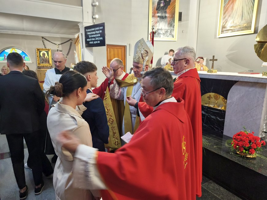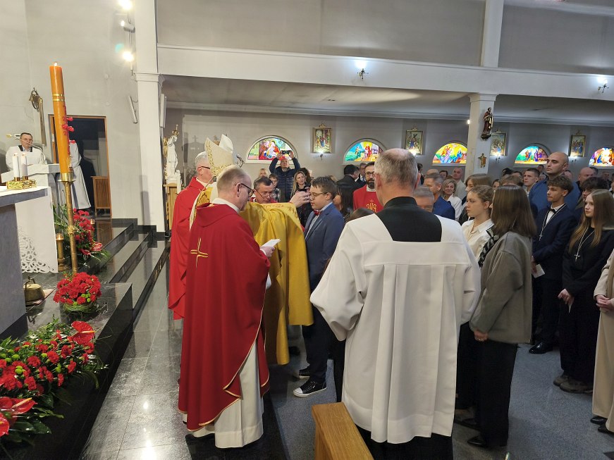 W czwartek 23 kwietnia 2026 roku na uroczystej Mszy św. koncelebrowanej o godz. 18:00, której przewodniczył ks. dziekan Adam Marek, z udziałem księdza biskupa Krzysztofa Nitkiewicza, ks. Macieja Charabina i ks. proboszcza Jana Zająca został udzielony sakrament bierzmowania młodzieży z naszej parafii. Sakramentu bierzmowania udzielił ksiądz biskup Krzysztof Nitkiewicz, który wygłosił do młodzieży Słowo Boże. W konfesjonałach posługiwali księża z dekanatu tarnobrzeskiego.