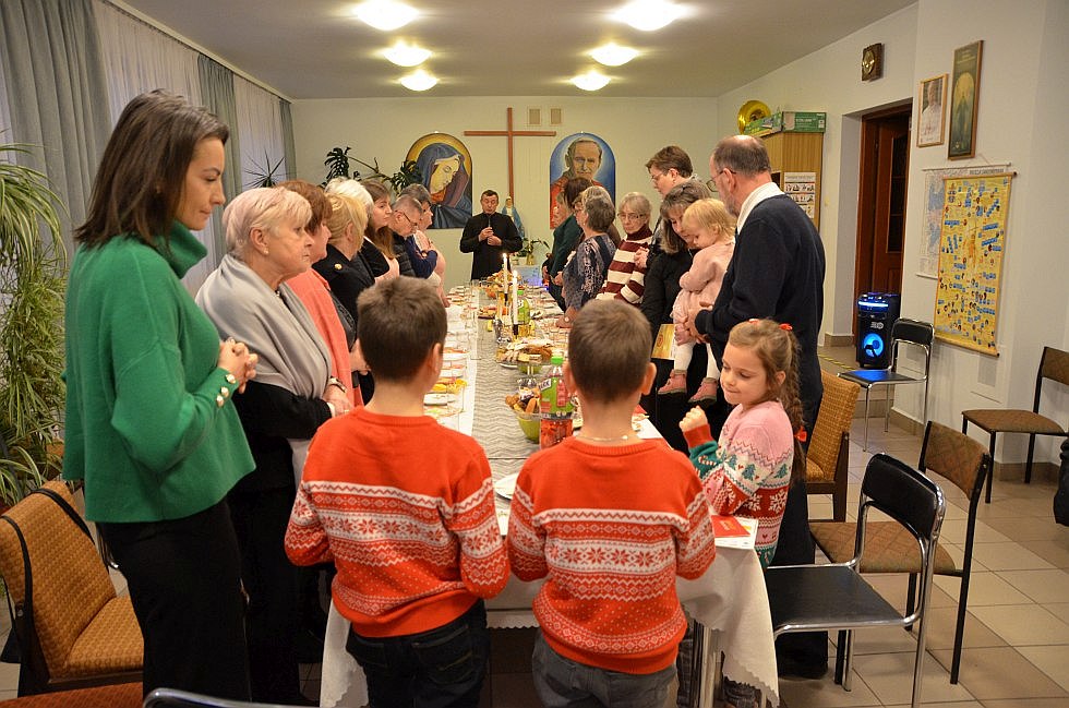 W pierwszą niedzielę stycznia 2026 roku w naszej parafii odbyło się spotkanie opłatkowe wspólnot parafialnych. Rozpoczęliśmy spotkanie od odmówienia Koronki do Miłosierdzia Bożego, po której członkowie wspólnot przeszli do domu parafialnego na spotkanie opłatkowe. Spotkanie rozpoczął ks. proboszcz Jan Zając przywitaniem wszystkich obecnych członków wspólnot i odczytaniem fragmentów pisma świętego.
