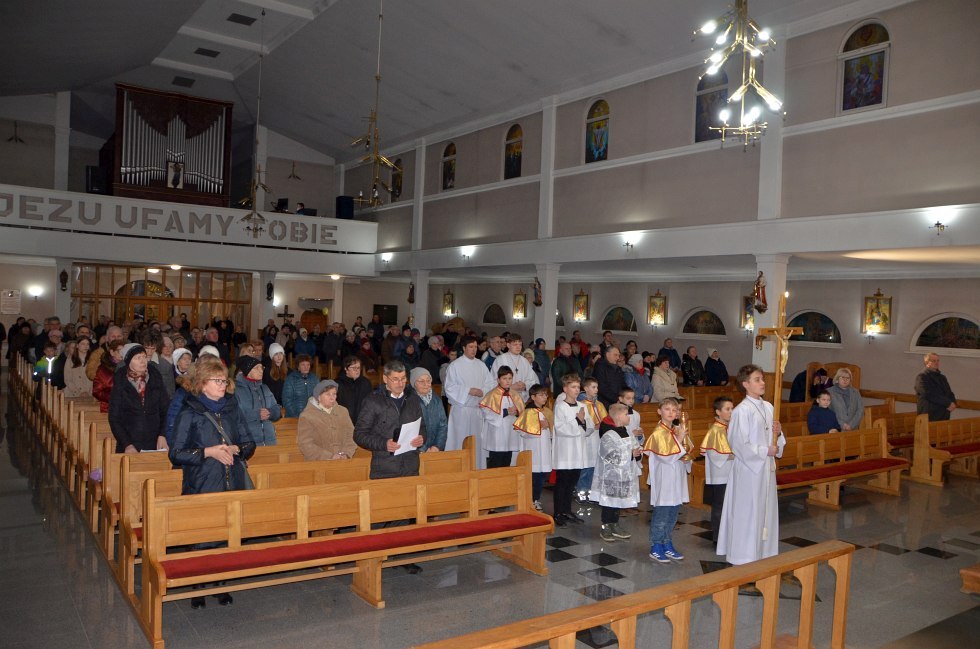 W pierwszy piątek Wielkiego Postu, 20 lutego 2026 roku o godz. 17:30 w naszym kościele zostało odprawione nabożeństwo pasyjne - Droga Krzyżowa. Bezpośrednio po nim została odprawiona Msza św., po której wierni wyruszyli, by przemierzając ulice Tarnobrzega i rozważając stacje męki Pańskiej - spotkać się, jak każdego roku, przy figurze Serca Pana Jezusa na osiedlu Serbinów.