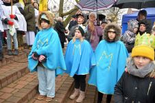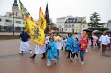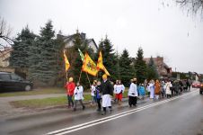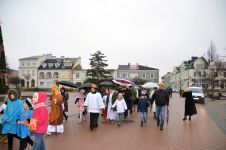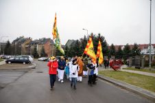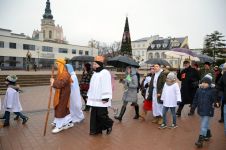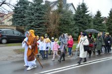 Pomimo padającego deszczu w naszym tegorocznym Orszaku Trzech Króli wraz z księdzem wikariuszem Sylwestrem Utnikiem szło liczne grono Liturgicznej Służby Ołtarza, dziewczynki z Dziewczęcej Służby Maryi, para dzieci w przebraniu Maryi i Józefa oraz wielu parafian. Szły całe rodziny niosąc na głowach korony, które wyrażały pragnienie oddania czci nowonarodzonemu Synowi Bożemu. Pomimo padającego deszczu nasz orszak był radosny, roześmiany i rozśpiewany. Jako orszak z trzeciej parafii dotarliśmy przed południem na Plac Bartosza Głowackiego. Tam spotkały się korowody z naszej parafii, z parafii pw. Matki Bożej Nieustającej Pomocy, z parafii pw. Świętej Barbary i parafii pw. Chrystusa Króla.