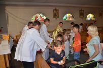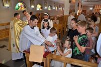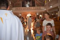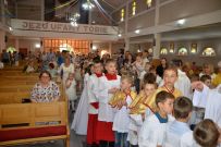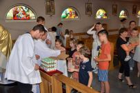 Po powrocie do kościoła ksiądz proboszcz Jan Zając poświęcił kwiaty, zioła i wianki, które stanowiło ważny element tej uroczystości. Na zakończenie Mszy św. miało miejsce błogosławieństwo dzieci. Po odmówieniu specjalnej modlitwy, na głowę każdego dziecka kapłani nałożyli swe ręce, kreśląc znak krzyża i wypraszając dla nich łaski. Każde z dzieci, za swoje zaangażowanie w procesje, dostało słodkie upominki.