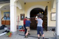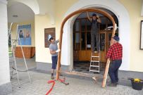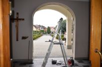 Wymiana drzwi głównych w naszym kościele jest dużym przedsięwzięciem. Stare drzwi wykonane z drewna, przez lata eksploatacji po prostu zużyły się. Drzwi zewnętrzne mają zatrzymać uciekające z kościoła ciepło. Istotny jest też ich wygląd – mówi się, że wejście to wizytówka, w tym przypadku kościoła.