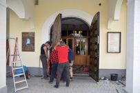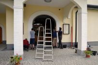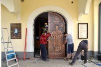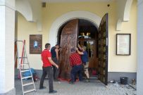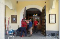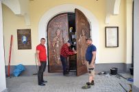 Poświęcenie wizerunków na nowych drzwiach wejściowych do kościoła odbędzie się 15 sierpnia w święto Wniebowzięcia Najświętszej Maryi Panny przed sumą dożynkową o godz. 11:30.