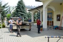 Kolejna ukończona inwestycja w naszym kościele. W piątek 9 sierpnia zostały zamontowane nowe miedziano-mosiężne, ocieplane drzwi frontowe w naszym kościele przedstawiające św. Jana Pawła II i bł. kardynała Stefana Wyszyńskiego. Operacja wymiany drzwi trwała prawie 5 godzin. Rozpoczęła się w godzinach porannych od demontażu starych drewnianych drzwi. Następnie została zamontowana rama nośna, na której osadzono wierzeje drzwiowe.