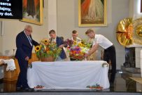 Kończąc sumę dożynkową ksiądz proboszcz podziękował za trud i poświęcenie włożone w przygotowanie pięknych koszy dożynkowych i dekoracji w kościele oraz przybyłym mieszkańcom i gościom za udział w uroczystości.