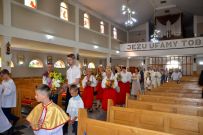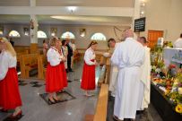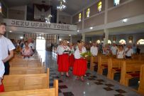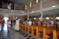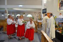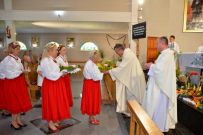 Mszy św. przewodniczył ksiądz proboszcz, który w swojej homilii mówił o tradycji przynoszenia w uroczystość Wniebowzięcia NMP bukietów ziół, kwiatów i warzyw, które zostają w tym dniu pobłogosławione. Mówił, że sam gest błogosławienia jest okazją do wychwalania Stwórcy za wszelkie otrzymane dary. Jest także prośbą, aby błogosławiona rzecz zawsze przypominała o Bogu i Jego dobroci, o Bożej opiece. W tę uroczystość w kościele błogosławimy zioła i kwiaty bo dziękujemy za dar pierwszych zbiorów właśnie w dniu, w którym osiąga pełnię zbawienia Maryja – Najdojrzalszy Owoc odkupionej ludzkości. Ofiarujmy Jej nasze serca i codzienny trud przybliżania się do Boga. Przecież na wzór Maryi mamy starać się być ludźmi wniebowzięcia – tymi, którzy świadomie i zdecydowanie podążają ku Niebu.