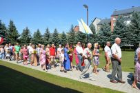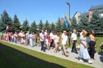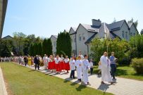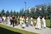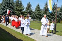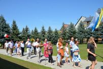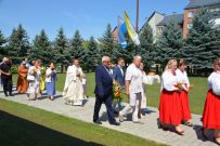 Na zakończenie Eucharystii ks. proboszcz pobłogosławił przyniesione do kościoła kwiaty i zioła, owoce i warzywa – plony ziemi. Następnie przy pięknej, słonecznej pogodzie tradycyjny korowód dożynkowy z wieńcami dożynkowymi przeszedł wokół kościoła.