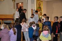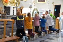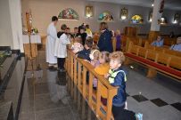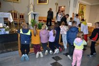 W naszym kościele 1 października rozpoczęliśmy wspólną modlitwą różańcową. O godz. 17:30 ksiądz Sylwester Utnik odprawił nabożeństwo różańcowe wspólnie z ministrantami, dziećmi i parafianami. Dzieci nieśmiało zareagowały na zaproszenie do modlitwy różańcowej przy balaskach ale z każdym dniem będą nabierały odwagi.