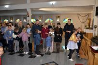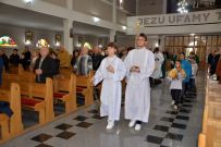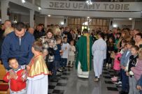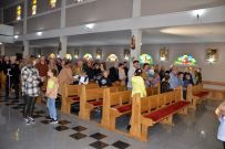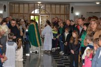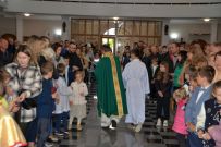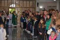 Ksiądz proboszcz zachęcał dzieci i rodziców do regularnej modlitwy różańcowej w domach oraz do uczestniczenia w nabożeństwach różańcowych w kościele. Przypomniał, że Matka Boża w Fatimie zachęcała do tej modlitwy właśnie dzieci. Bo różaniec to prosta, przepiękna modlitwa ucząca dzieci przeżywania wraz z Maryją wydarzeń z życia Jezusa, którego mają przyjąć w po raz pierwszy wtedy kiedy będą w pełni uczestniczyć w Ofierze Mszy Świętej.