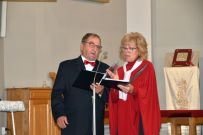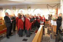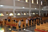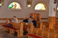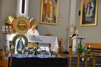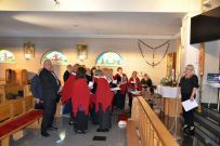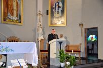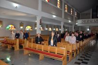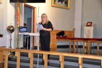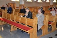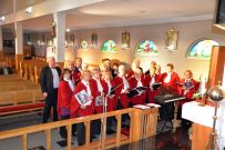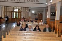 Pani Ewa Rokoszewska przywitała panie, które przyjechały do Tarnobrzega z Janowa Lubelskiego - Panią Teresę Duda – animatorkę Wspólnoty dla Intronizacji NSPJ w Sanktuarium Matki Bożej w Janowie Lubelskim i Panią Urszulę Surma - lekarkę, która w 2019 roku otrzymała nagrodę Diecezji Sandomierskiej „Arbor Bona” – Dobrego Drzewa oraz Ojca dominikanina Andrzeja Chlewickiego – opiekuna grupy dzieła intronizacji NSPJ w kościele Dominikanów w Tarnobrzegu. Do naszego kościoła na występ przybył również Chór Tarnobrzeski ze swoją dyrygentką panią Anetą Surowiec.