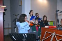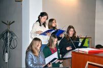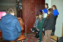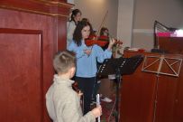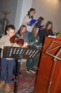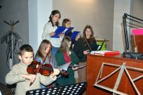 W podniosły, świąteczny nastrój przed Mszą Pasterką wprowadził nas występ Pana Organisty, Scholi, dwóch młodych skrzypaczek i jeszcze młodszego skrzypka oraz wiolonczelisty, którzy wystąpili w wigilijnym koncercie kolęd. Przed koncertem Pan organista pomodlił się wspólnie z występującą w koncercie młodzieżą, a następnie grając na organach uczestniczył w Ich występie. Zebrani w kościele parafianie i ich goście wspólnie ze Scholą przez pół godziny śpiewali piękne polskie kolędy.