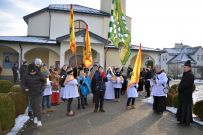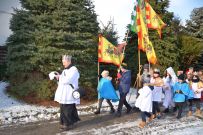 Z naszego kościoła po Mszy św. o godz. 10:00 pod przewodnictwem księdza wikariusza Sylwestra Utnika wyruszył kolorowy orszak. Przed wyjściem z placu kościelnego ksiądz Sylwester odczytał ewangelię, po której ruszyliśmy odprowadzeni do bramy głównej przez księdza proboszcza Jana.
