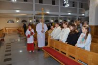 Dzień 7 marca 2025 roku – to pierwszy piątek miesiąca i pierwsza droga krzyżowa. To błogosławiony czas dla nas, abyśmy przez uczestnictwo w nabożeństwie, mogli zadośćuczynić Bogu za nasze grzechy i całego świata. Wraz ze Środą Popielcową weszliśmy w okres Wielkiego Postu. O godz. 17.30 zostało odprawione pierwsze nabożeństwo wielkopostne - Droga krzyżowa. Ministranci, niosąc świece i krzyż przechodzili od stacji do stacji odtwarzając symboliczną drogę Jezusa Chrystusa na śmierć i złożenia go do grobu.