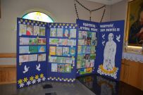 W naszej świątyni można obejrzeć wystawę prac plastycznych z okazji 20 rocznicy śmierci Papieża Jana Pawła II, którą obchodziliśmy 2 kwietnia 2025 roku. Piękne rysunki wykonały dzieci z naszej osiedlowej Szkoły Podstawowej nr 9.