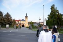 Mszy Św. wieczornej przewodniczył ksiądz Sylwester, który również wygłosił homilię.. Eucharystię koncelebrował ks. Jan i ks. Stanisław. Po Mszy św. wierni wraz z duchowieństwem z modlitwą różańcową przeszli w procesji ulicami osiedla Dzików. To, co było dla takiej procesji znakiem rozpoznawczym, to obecność figury Matki Boskiej Fatimskiej, która była niesiona przez cały czas trwania procesji, otoczona wiernymi,