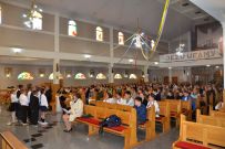 W tym roku na uroczystą Mszę świętą przybyli uczniowie naszej szkoły podstawowej wraz z dyrekcją, nauczycielami i zaproszonymi gośćmi. Mszy św. koncelebrowanej przewodniczył i homilię wygłosił ks. proboszcz Jan Biedroń z parafii pw. MBNP z Serbinowa.