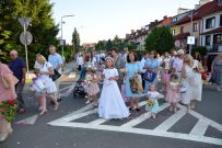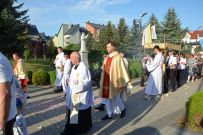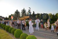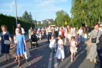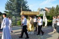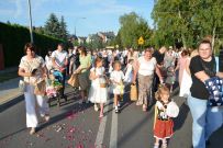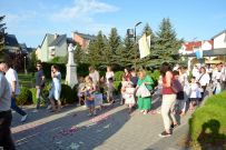 Śpiewając Litanię do Serca Pana Jezusa wyszliśmy w procesji eucharystycznej do czterech ołtarzy. Dziewczynki pięknie ubrane sypały kwiatki, zaś chłopcy dzwonili dzwoneczkami. Przed ołtarzami wierni otrzymali błogosławieństwo Najświętszym Sakramentem udzielone na cztery strony świata – jako znak Bożej opieki nad całą wspólnotą. Po procesji i powrocie do świątyni ks. proboszcz Jan dokonał poświęcenia przyniesionych ziół, kwiatów i bukietów - symbol ludzkiej pracy, wdzięczności i błogosławieństwa plonów, a następnie odmówił modlitwę błogosławieństwa nad dziećmi. Następnie kapłani udzielali najmłodszym parafianom indywidualnego błogosławieństwa.