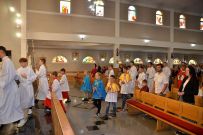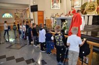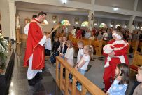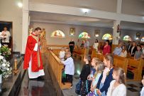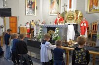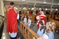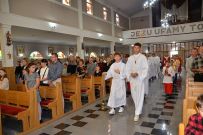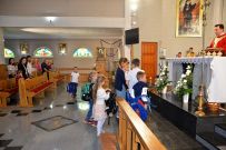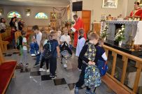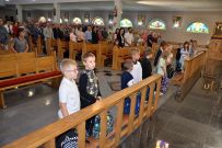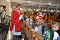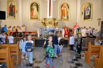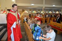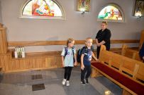 W niedzielę 4 września 2025 r. na Mszę św. o godzinie 10:00 przyszli pierwszoklasiści z naszej osiedlowej szkoły podstawowej razem ze swoimi rodzicami. Na Eucharystii ksiądz Wojciech uroczyście pobłogosławił dzieci klas pierwszych i poświęcił przyniesione przez nie plecaki i przybory szkolne, które będą służyły dzieciom w czasie nowego roku szkolnego. Teraz dzieci będą mogły z Bożym wsparciem zdobywać wiedzę.