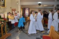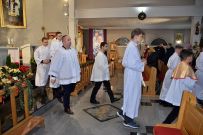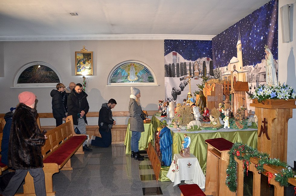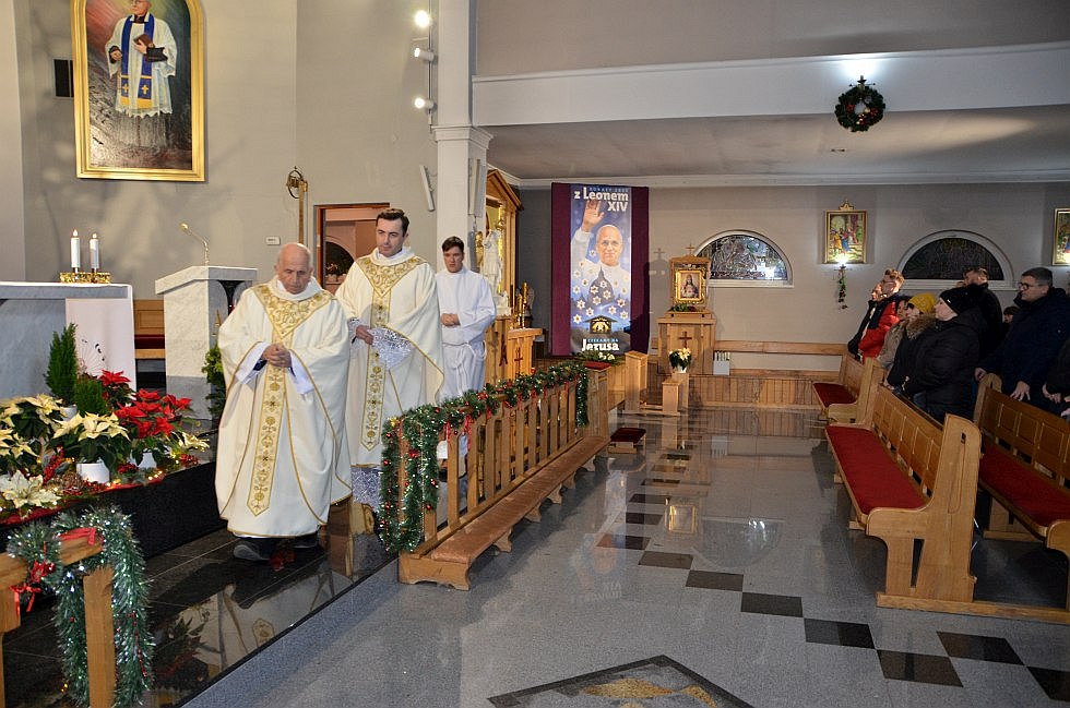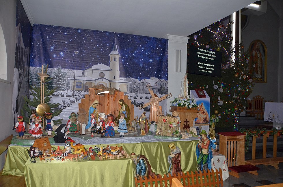 Przed Mszą św. ksiądz proboszcz uroczyście w procesji zaniósł Dzieciątko Jezus do żłóbka, który znajduje się w naszej ruchomej szopce Podczas tego nabożeństwa, tak jak przed wiekami pasterze i królowie oczekiwaliśmy na narodziny Jezusa. Radosny śpiew kolęd towarzyszył uroczystej liturgii, która co roku przypomina o radości skromnych pasterzy, którzy pierwsi spotkali Narodzonego Jezusa.