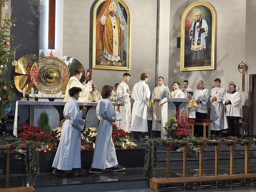 Mszy Świętej Pasterskiej, o godzinie 24:00, przewodniczył ks. proboszcz Jan z udziałem ks. Wojciecha i ks. Stanisława.