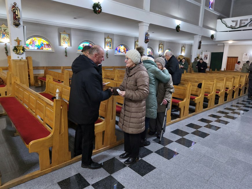 Po Mszy św. w ten szczególny dzień wszyscy otrzymali od ministrantów opłatek, po czym nastąpiło radosne, serdeczne i piękne składanie sobie nawzajem życzeń świątecznych i noworocznych. Wcześniej podczas Mszy św. ks. proboszcz Jan Zając podziękował harcerzom, za przyniesienie do naszego kościoła światełka betlejemskiego, byśmy mogli zabrać go do naszych domów i zapalić świecę na stole wigilijnym.