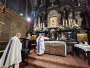 O godz. 24:00 została odprawiona Eucharystia pod przewodnictwem ks. Jana Zająca z naszej parafii pw. Miłosierdzia Bożego z udziałem ks. Witolda Płazy z parafii pw. Nawiedzenia Najświętszej Maryi Panny w Zakrzowie. Ksiądz Witold wygłosił do pielgrzymów kazanie.