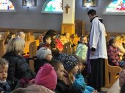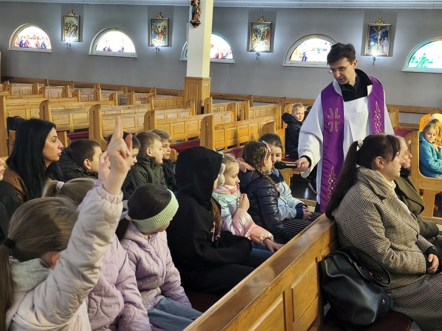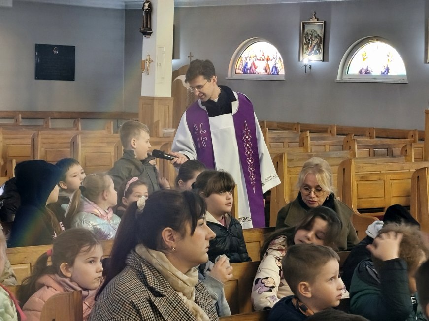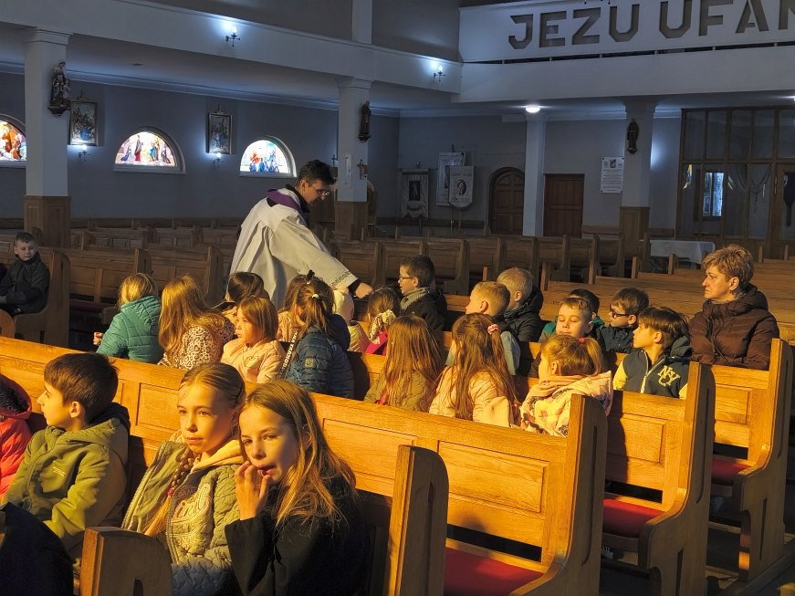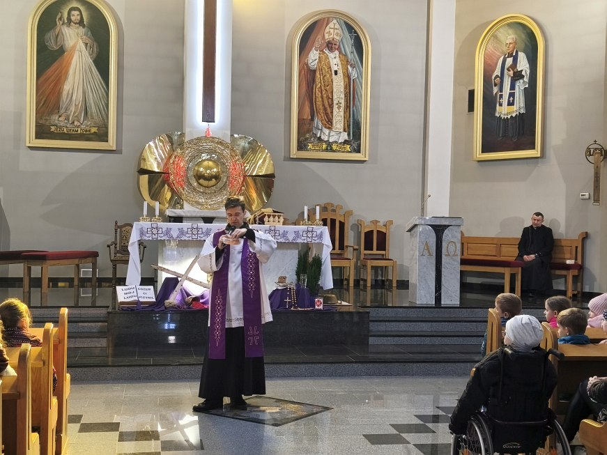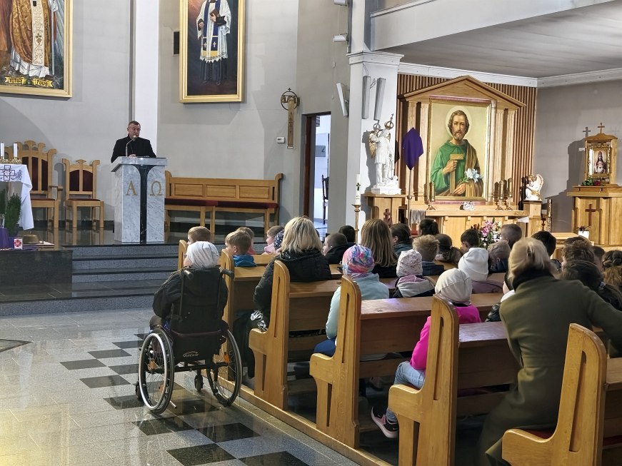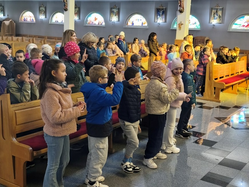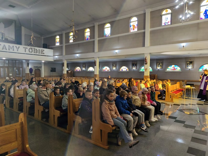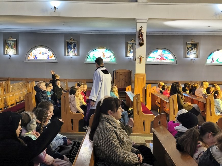 Dzieci odpowiedziały na pytanie ks. rekolekcjonisty gdzie możemy spotkać Pana Jezusa, jakie mamy sakramenty święte, kto to jest osoba święta, kto jest namalowany na obrazach wiszących w prezbiterium. Na zakończenie ks. rekolekcjonista mówił o św. Carlo Acutis – włoskim uczeniu liceum w Mediolanie, który mówił, że „Eucharystia jest moją autostradą do nieba”. Dzieci na zakończenie swojego pierwszego dnia rekolekcji wielkopostnych obejrzały krótki film o św. Carlo Acutisie.