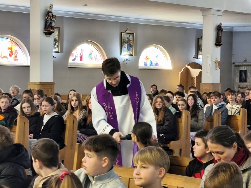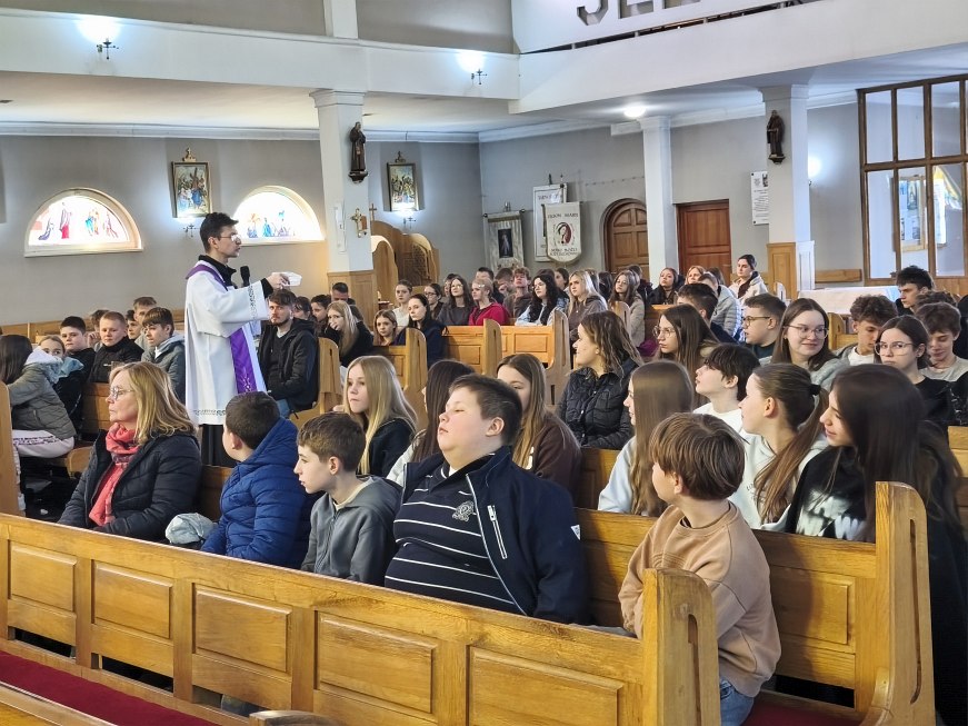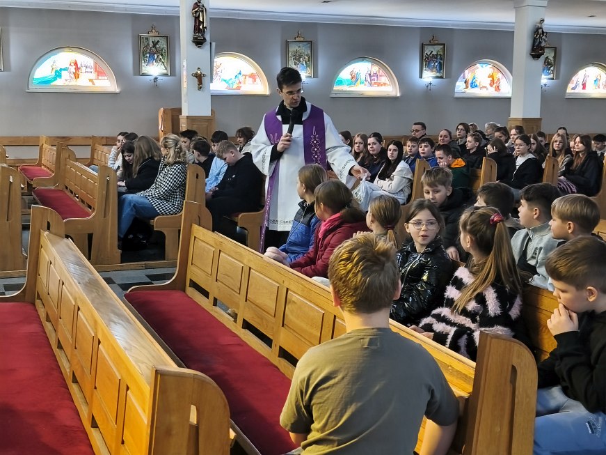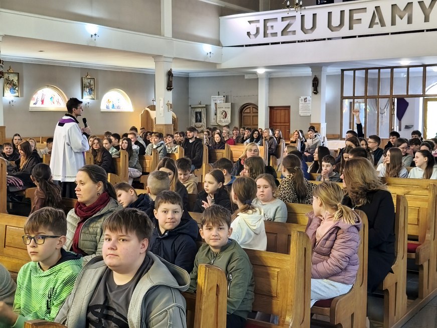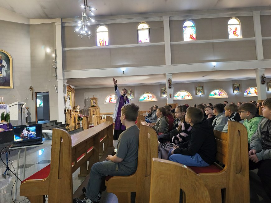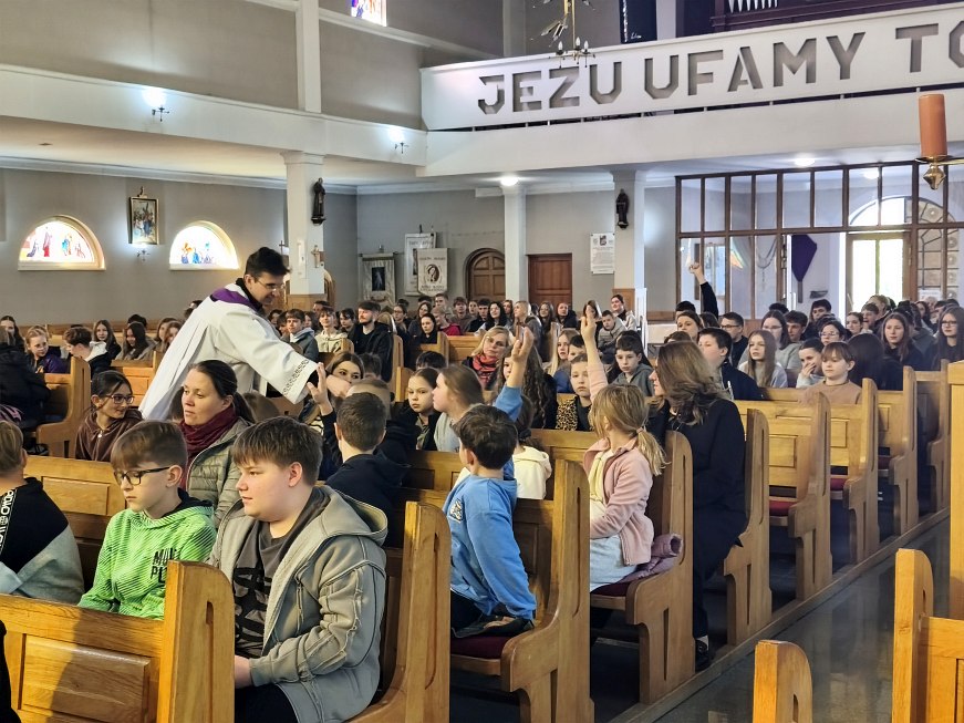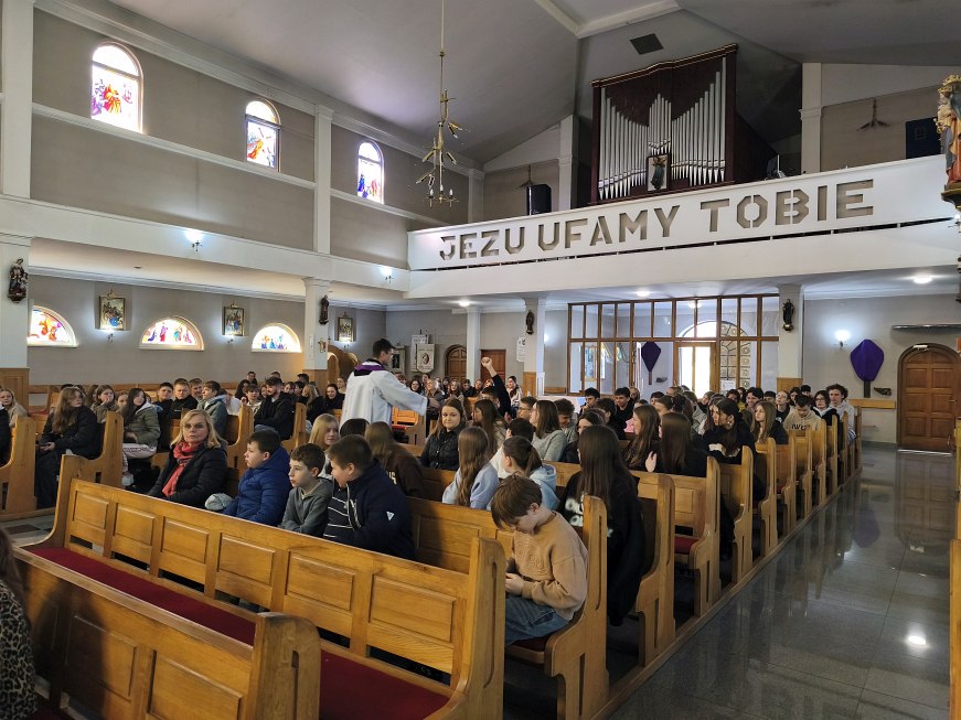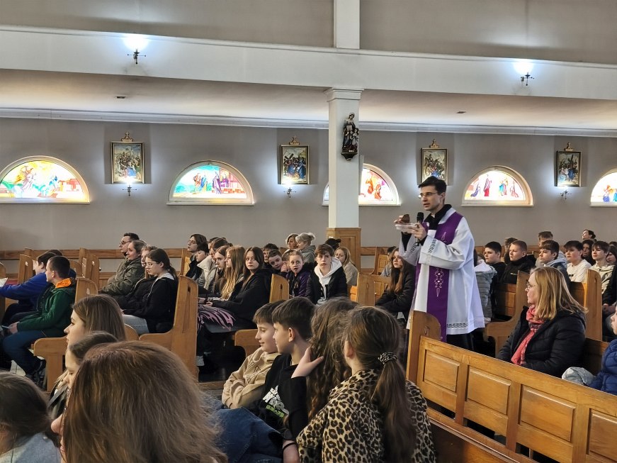 W poniedziałek 23 marca 2026 r. o godz. 10.00 została odprawiona Msza św., w której udział wzięli uczniowie klas od IV do VIII Szkoły Podstawowej Nr 9, nauczyciele i opiekunowie. W wygłoszonej w trakcie Mszy św. nauce rekolekcyjnej ks. rekolekcjonista Konrad Fedorowski wspólnie z uczniami analizował znaczenie wyrazu „rekolekcje” jak i znaczenie rekolekcji w życiu człowieka. Mówił o rekolekcjach jako o czasie spotkania z Panem Jezusem, który jeśli będzie dobrze przeżyty pozwoli Mu poukładać na nowo nasze życie.