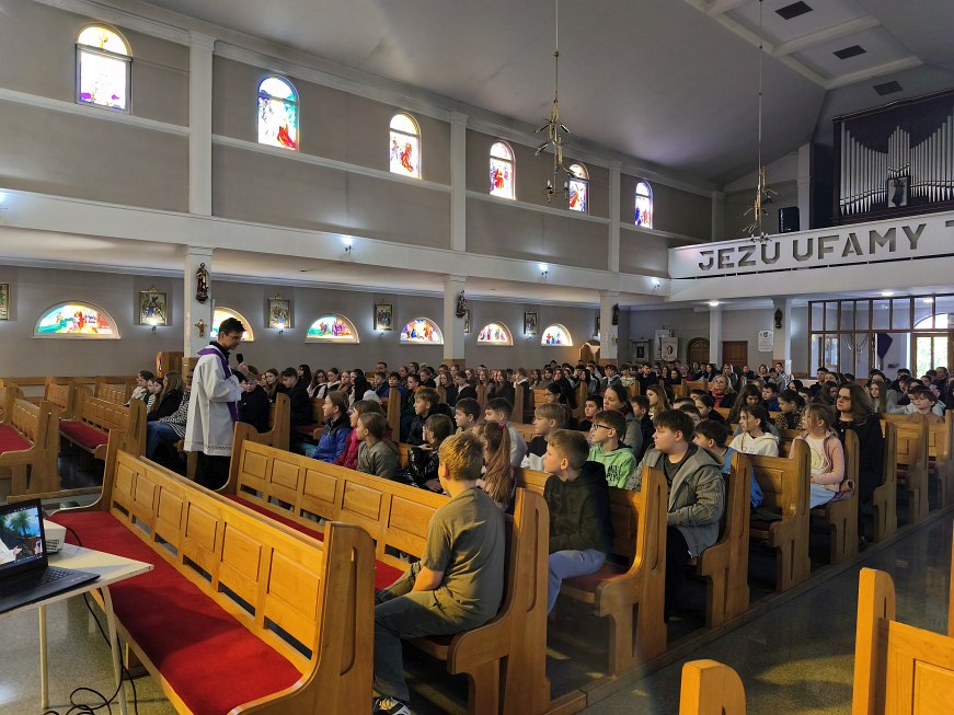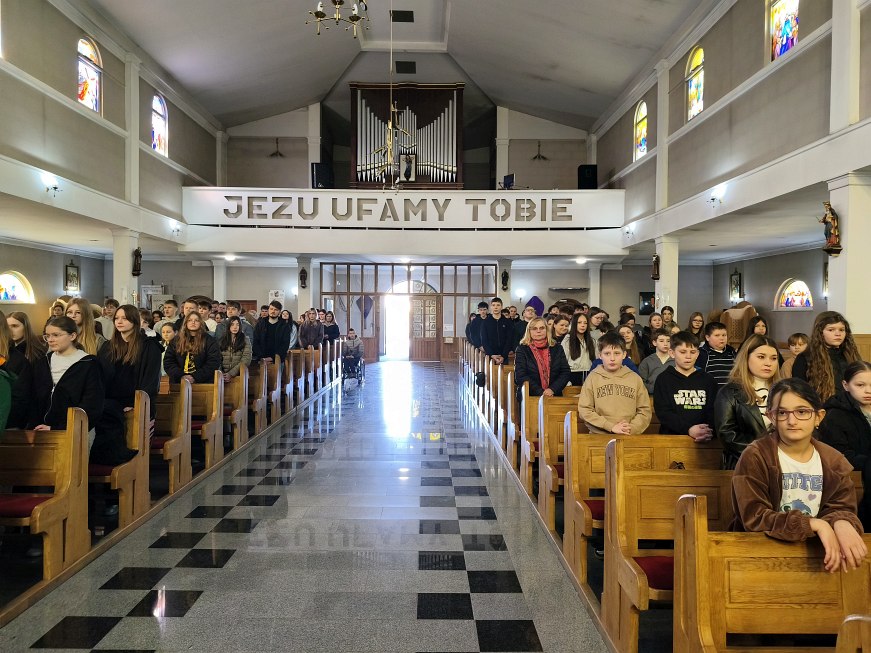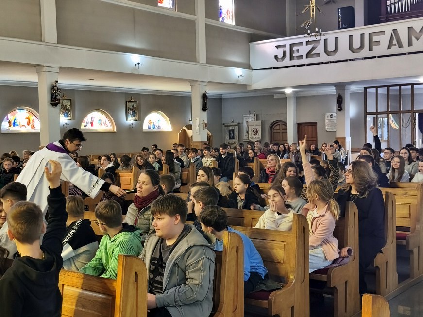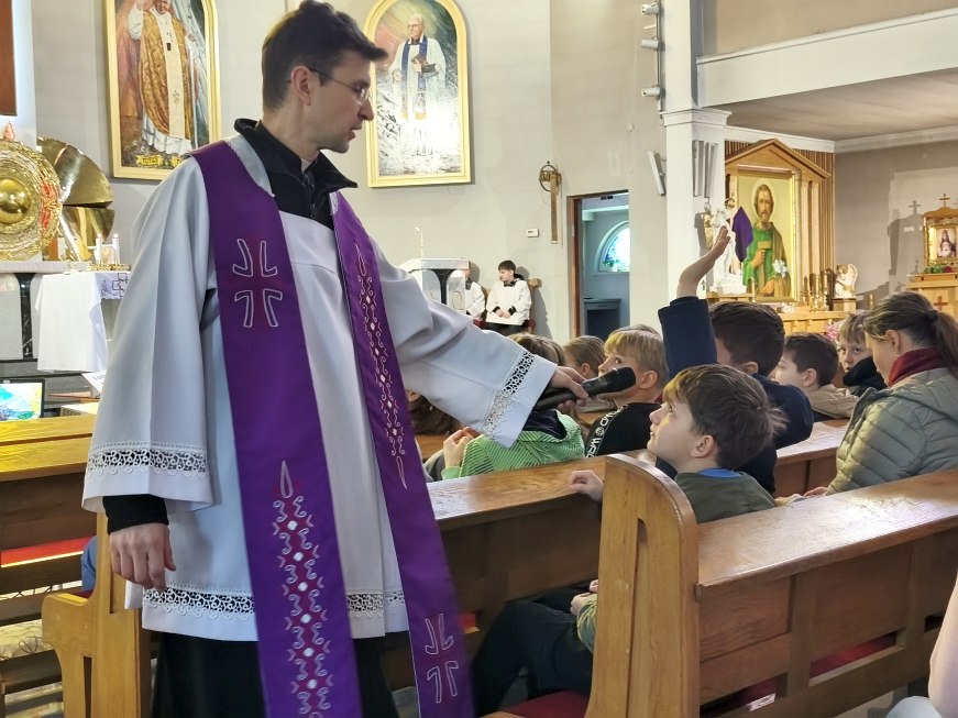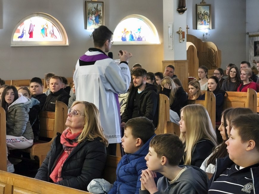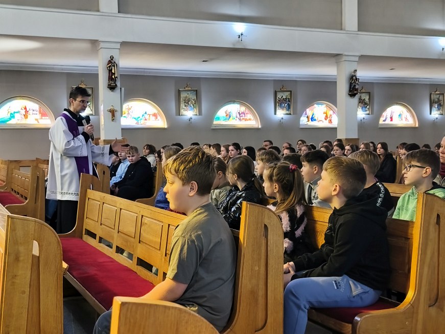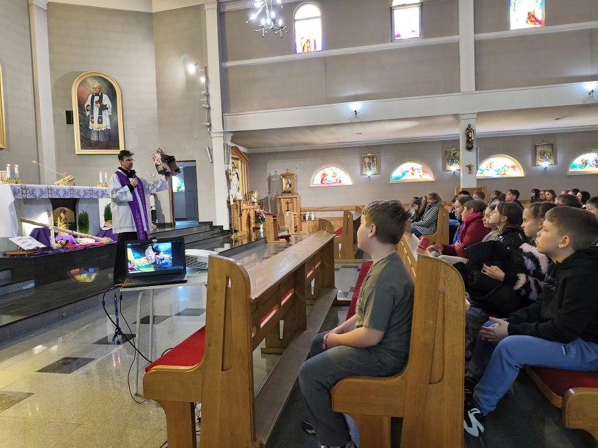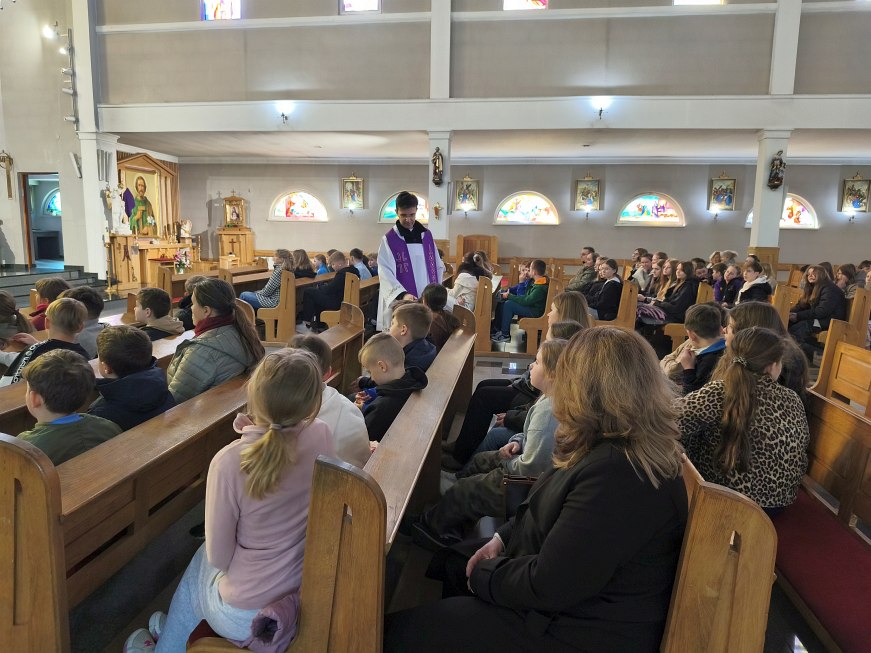 W poniedziałek 23 marca 2026 r. o godz. 10.00 została odprawiona Msza św., w której udział wzięli uczniowie klas od IV do VIII Szkoły Podstawowej Nr 9, nauczyciele i opiekunowie. W wygłoszonej w trakcie Mszy św. nauce rekolekcyjnej ks. rekolekcjonista Konrad Fedorowski wspólnie z uczniami analizował znaczenie wyrazu „rekolekcje” jak i znaczenie rekolekcji w życiu człowieka. Mówił o rekolekcjach jako o czasie spotkania z Panem Jezusem, który jeśli będzie dobrze przeżyty pozwoli Mu poukładać na nowo nasze życie.