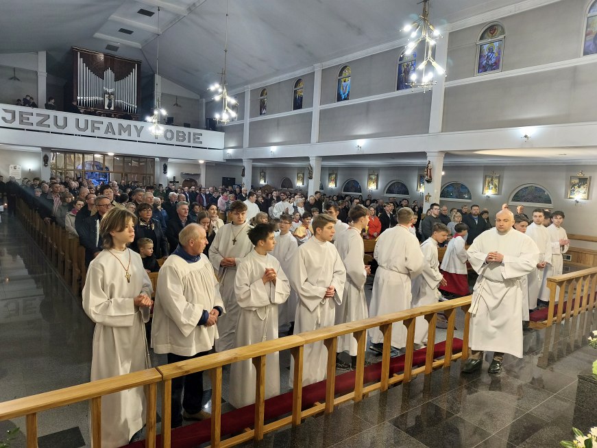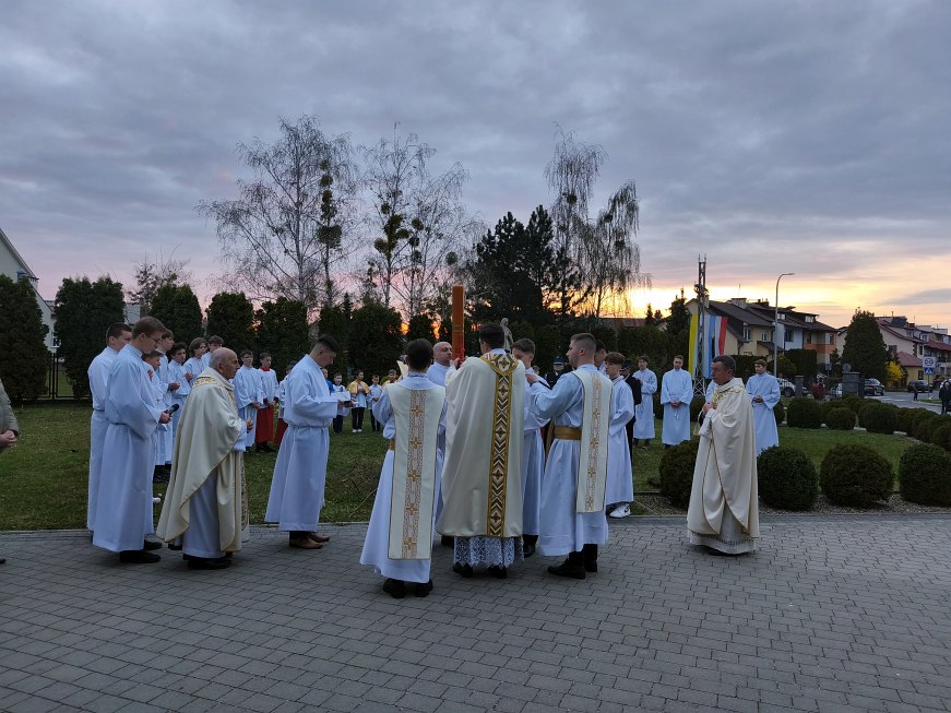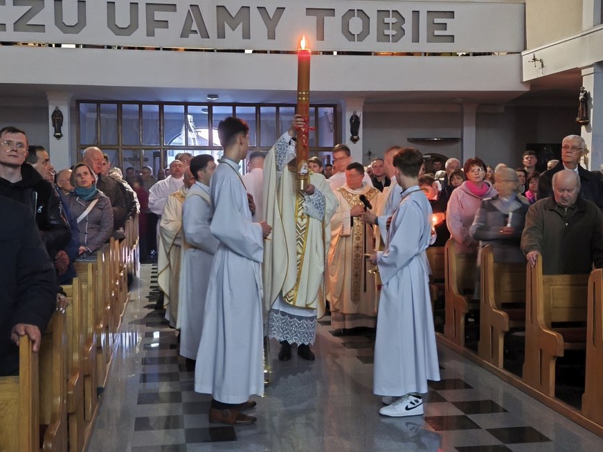 Swoim pięknym śpiewem chór parafialny pod kierownictwem Michała Wojtaszka uświetnił Wigilię Paschalną. Po zakończeniu Wigilii Paschalnej w Wielką Sobotę Najświętszy Sakrament został przeniesiony do miejsca adoracji, która trwała do godz. 23:00.