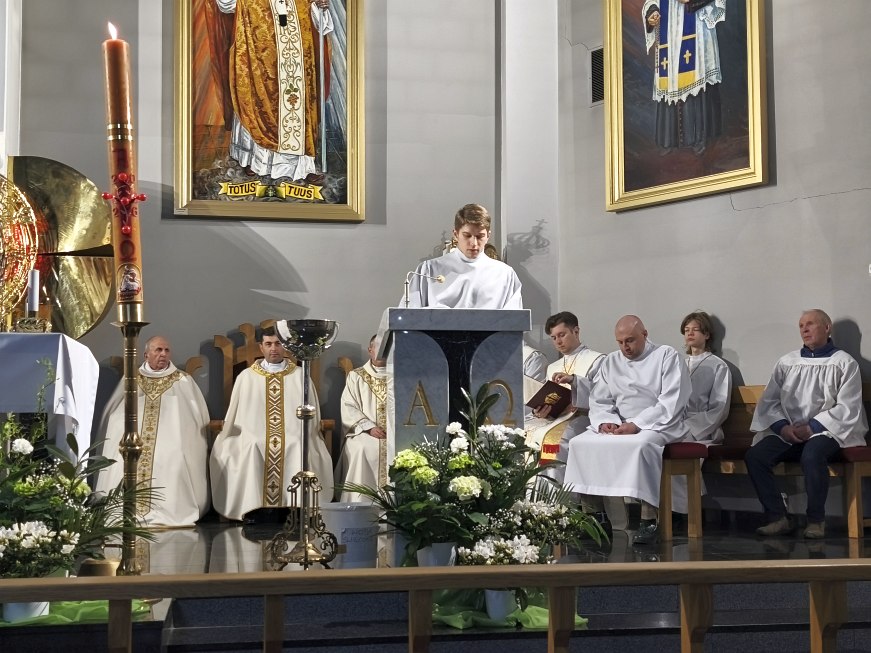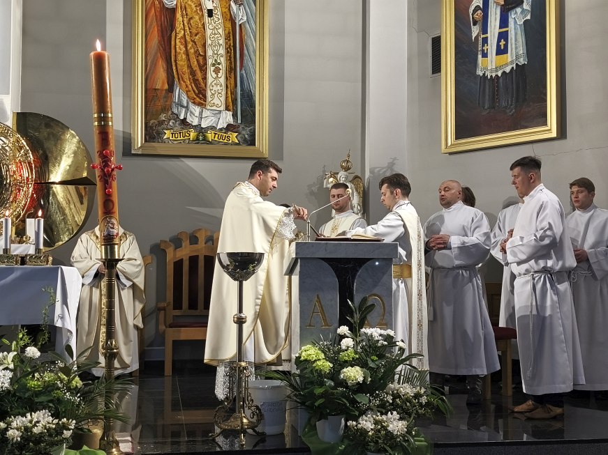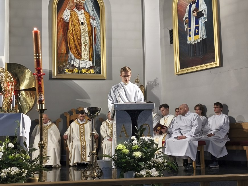 Na koniec liturgii światła zaśpiewane zostało orędzie paschalne - Exultet – przepiękna pieśń na cześć światła, którym jest Chrystus. Jest to starożytny hymn wielbiący wspaniałość Bożego dzieła odkupienia świata – od grzechu Adama aż do zbawienia, które dokonało się w Chrystusie.