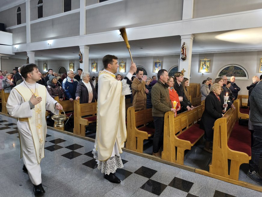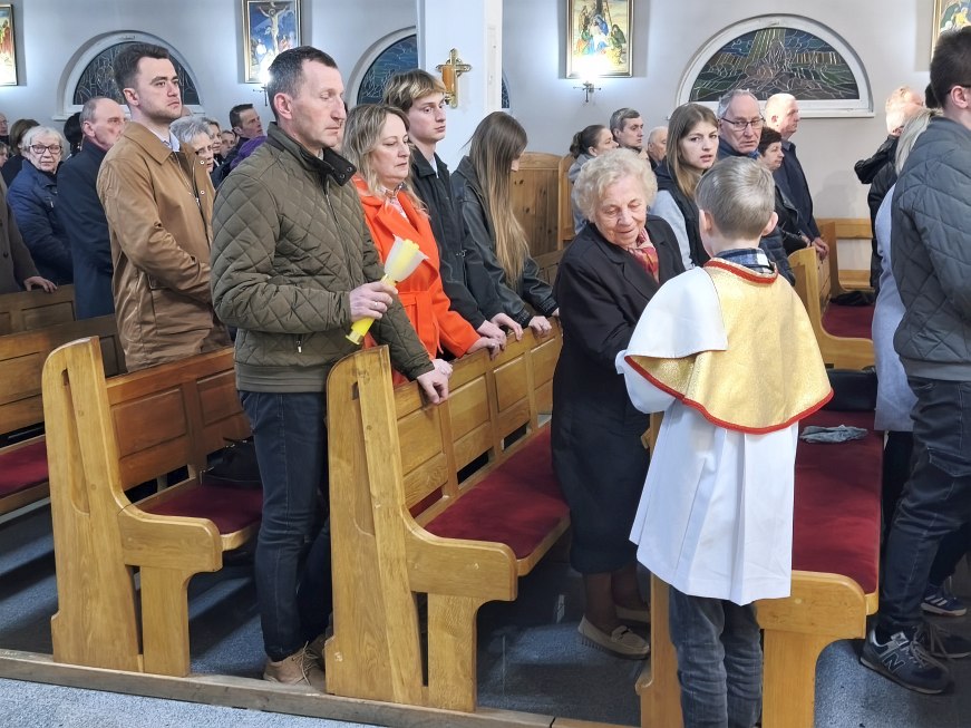 Światło od świecy paschalnej stopniowo rozszerzało się na świece trzymane przez wiernych za pośrednictwem ministrantów zapalających te świece.