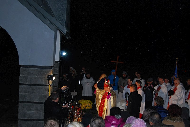 Po zakończonej Eucharystii w scenerii jesienno-zimowej, pośród płatków padającego śniegu wierni zebrani w Kaplicy Wszystkich Świętych przeszli na teren cmentarza, gdzie ks. bp. Edward Frankowski dokonał poświęcenia grobowca ks. Prałata Michała Józefczyka.