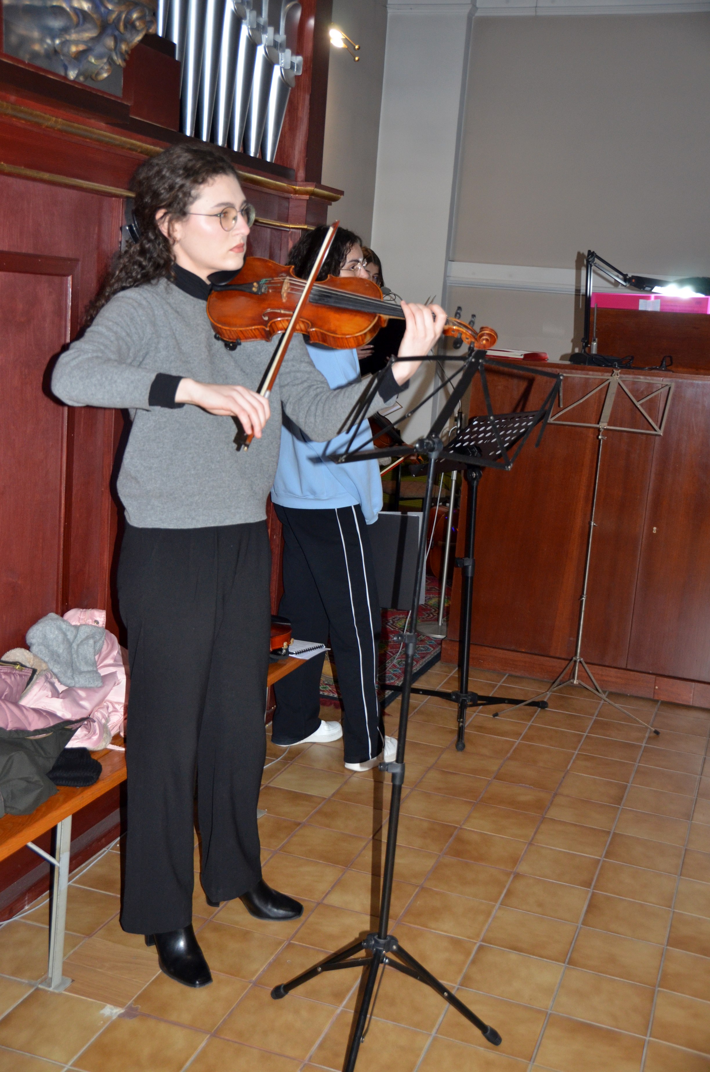 W podniosły, świąteczny nastrój przed Mszą Pasterką wprowadził nas występ Pana Organisty, Scholi, dwóch młodych skrzypaczek i jeszcze młodszego skrzypka oraz wiolonczelisty, którzy wystąpili w wigilijnym koncercie kolęd. Przed koncertem Pan organista pomodlił się wspólnie z występującą w koncercie młodzieżą, a następnie grając na organach uczestniczył w Ich występie. Zebrani w kościele parafianie i ich goście wspólnie ze Scholą przez pół godziny śpiewali piękne polskie kolędy.