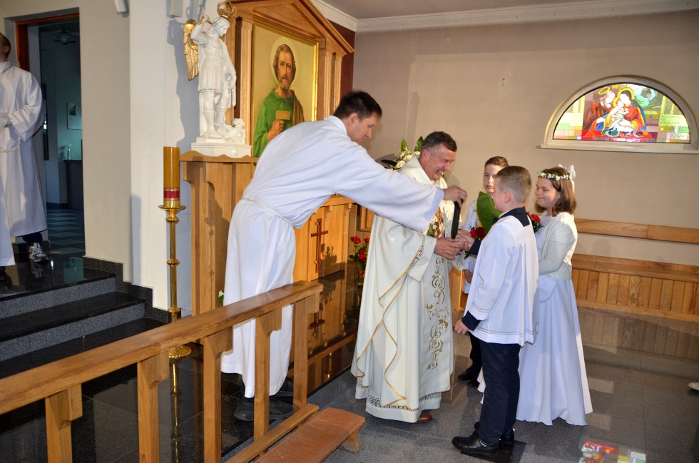 Po Mszy świętej Liturgiczna Służba Ołtarza, dzieci które obchodzą I rocznicę przyjęcia Komunii Świętej, przedstawiciel wspólnot parafialnych i rada parafialna złożyli Jubilatowi piękne życzenia i podziękowania za 30 lat kapłaństwa. Podziękowali za służbę Bogu i człowiekowi za udzielone sakramenty, za każdą odprawioną mszę świętą. Podziękowali za mądre i pouczające kazania, za liczne gesty życzliwość oraz poświęcony czas i troskę. Za piękny kościół i jego otoczenie, które zmienia się dzięki inicjatywie i pracowitości ks. proboszcza. Życzyli Jubilatowi dobrego zdrowia, siły, wytrwałości oraz otwartych serc parafian.