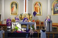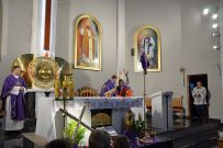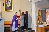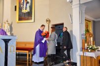 Na zakończenie Mszy św. przedstawiciele naszej wspólnoty parafialnej wiązanką kwiatów i pięknymi słowami wdzięczności podziękowali księdzu rekolekcjoniści Tomaszowi Zych za poprowadzenie w naszym kościele rekolekcji wielkopostnych. Po nich podziękowanie księdzu rekolekcjoniści złożył ksiądz proboszcz Jan Zając. Na koniec ksiądz rekolekcjonista Tomasz udzieli wiernym błogosławieństwa.